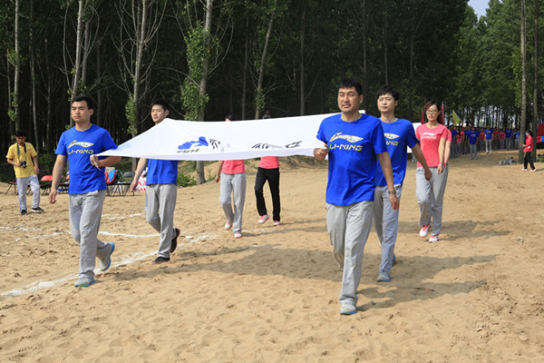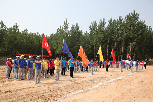 上午9:30,職工趣味運動會正式開始,6支代表隊和裁判隊分別高舉著自行繪制的隊旗,邁著矯健的步伐,喊著響亮的口號,依次通過主席臺,接受大會檢閱。運動員代表與裁判員代表先后進行了詼諧幽默的宣誓。公司副總經理班磊發表了熱情洋溢的致辭,并宣布職工趣味運動會正式開幕。