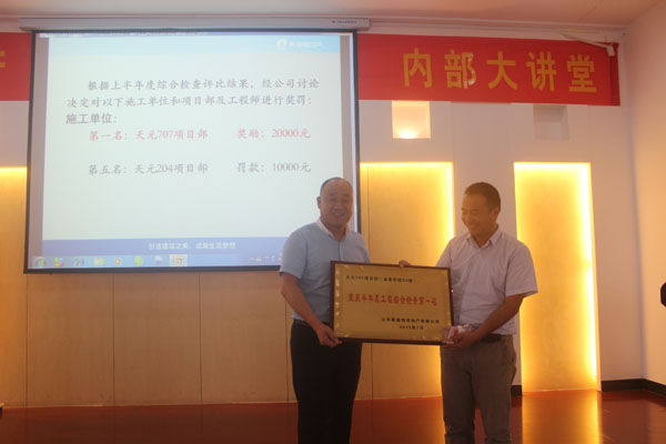 天元707項目部作為金泰華城S4項目的參建單位,在上半年工程檢查中綜合排名第一。獲得公司給予的20000元現金獎勵。同時公司金泰華城項目部也獲得20000元現金獎勵。獲獎單位表示將會再接再厲,在今后的檢查中取得更好成績。