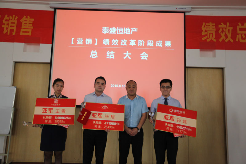 最后,孫總對本次銷售績效總結(jié)會做了重要講話。首先,孫總肯定了營銷績效改革取得的成果,并對銷售先進(jìn)個人進(jìn)行了肯定和鼓勵。接著,孫總進(jìn)一步闡釋了召開本次總結(jié)會的意義,以此為契機(jī),做產(chǎn)品的同時更要追求品質(zhì),進(jìn)而完成只有最好的品牌追求!并且聯(lián)系當(dāng)代名企改革案例,證實泰盛恒目前實行的大項目制是改革趨勢,而且泰盛恒會在目前秉承的高標(biāo)準(zhǔn)高質(zhì)量的基礎(chǔ)上堅持更高的標(biāo)準(zhǔn),高遠(yuǎn)的目標(biāo)!因為泰盛恒,每天不一樣!因為只有這樣,泰盛恒才能持久做毋庸置疑的行業(yè)標(biāo)桿,成為行業(yè)的潮流引領(lǐng)者!