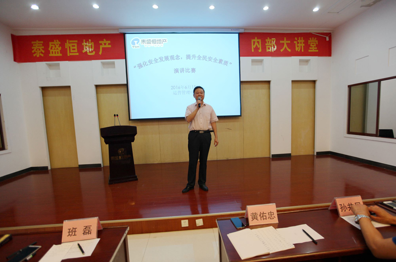 隱患險于明火,防范勝于救災,責任重于泰山。2016615日,由運營管理中心組織泰盛恒地產、中匯地產、啟翔代理公司、港信裝飾公司、鴻豐園林公司全員及奧晟物業主管以上人員在六樓會議室舉行以“強化安全發展觀念,提升全民安全素質”為主題的演講比賽。來自各個中心、部門及分子公司的14名選手參加了本次演講比賽。