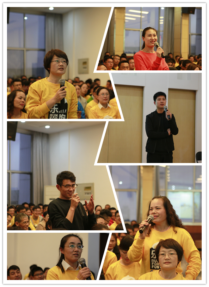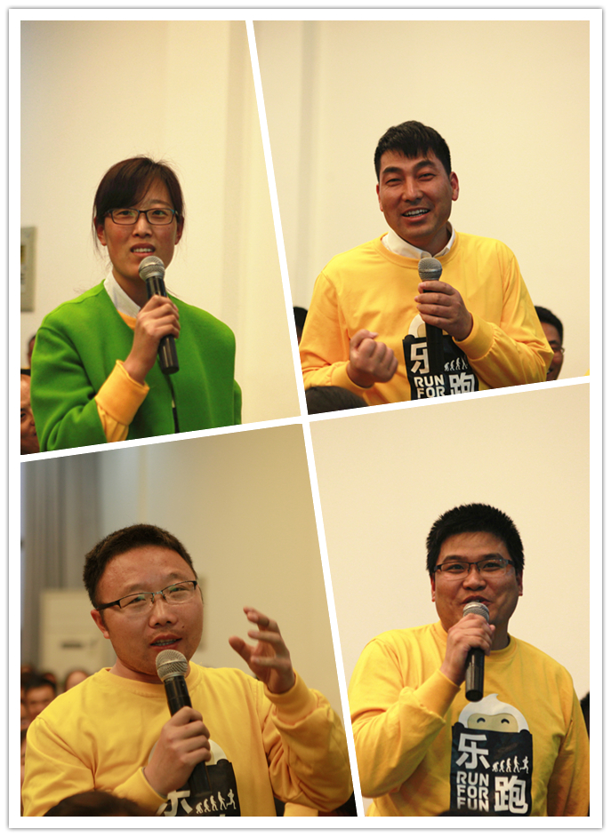 一首《最貴是健康》拉開了本次大會的序幕。首先,趙主席先以“經(jīng)過這段時間的跑步,大家感覺自己有什么變化嗎?”為切入點進行交流,隨后回顧了公司組織的首屆樂跑賽活動精彩視頻,并讓舒格蘭案場的同事分享了10公里跑步的感想和感悟,由此引出“你是如何看待跑步的”、“你為什么而跑步”等問題讓大家思考、討論。