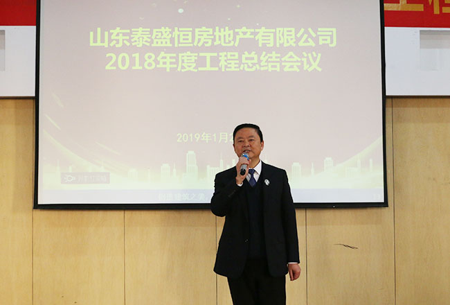 2019年1月23日下午,泰盛恒地產2018年度工程總結大會在六樓會議室召開,公司經營班子成員、項目中心全員、檢查組成員、總分包單位項目經理、技術人員及供應商代表100余人參加了本次大會。