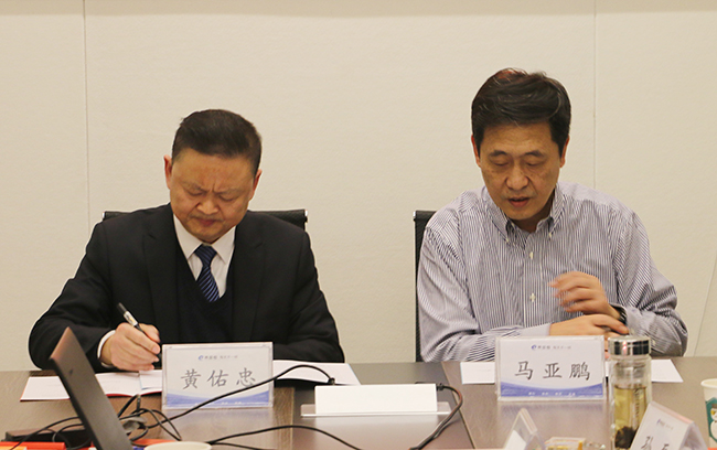 馬亞鵬董事長(zhǎng)(右)與黃佑忠總經(jīng)理(左)簽訂目標(biāo)責(zé)任書